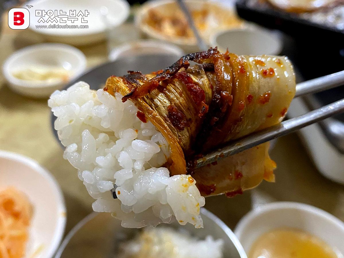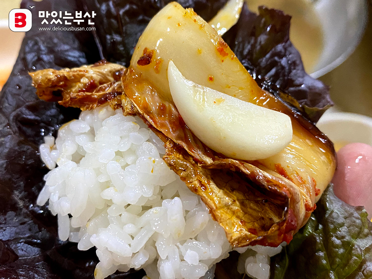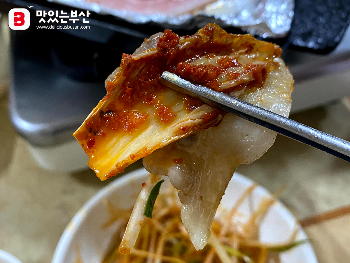구운 김치로 싸서도 먹고.