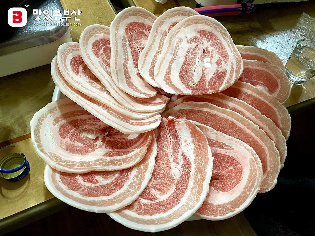 이 집은 생삼겹살을 말아서 급랭시킨 뒤 육절기로 썰어낸다고 들었다.