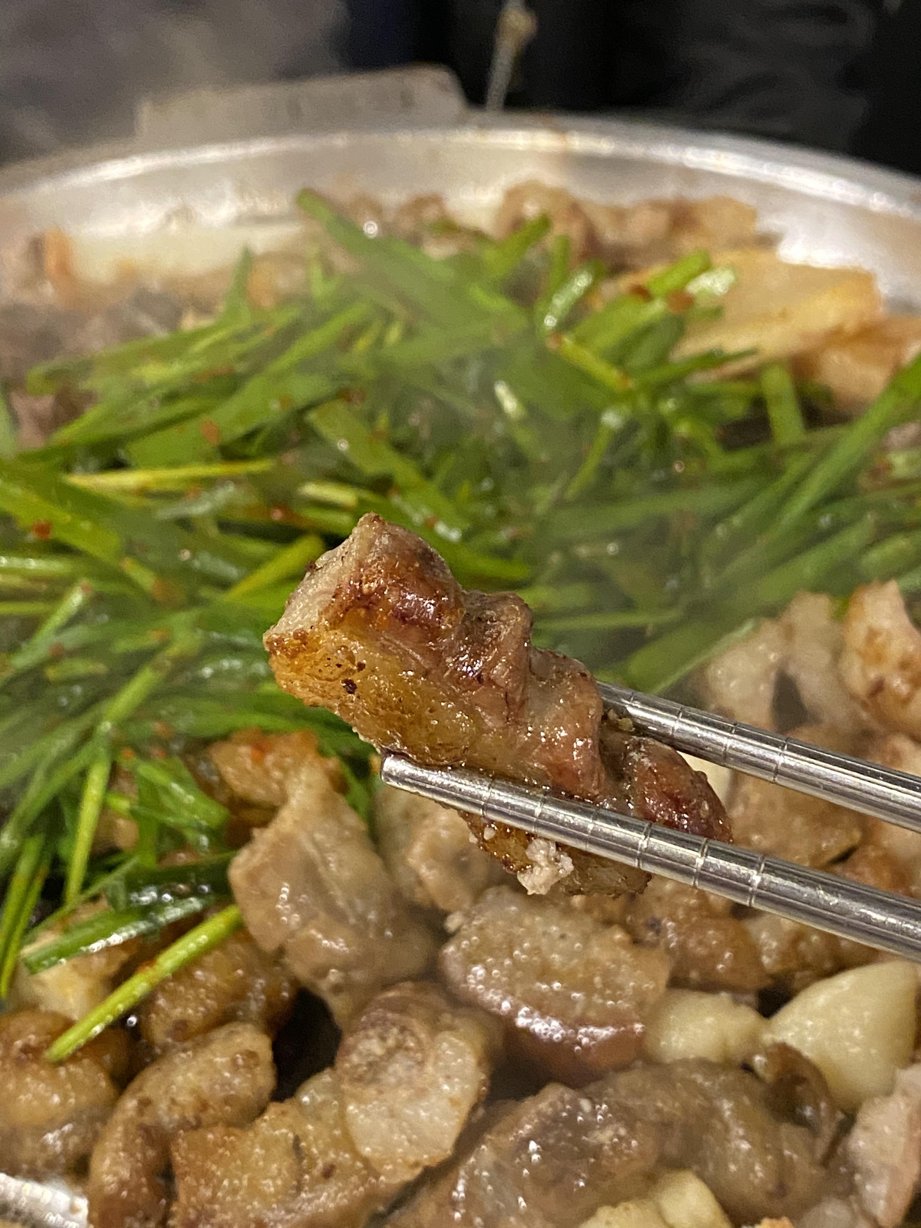 초벌된 곱창을 한번 더 익혀주고 부추를 수북하게 올려준다.