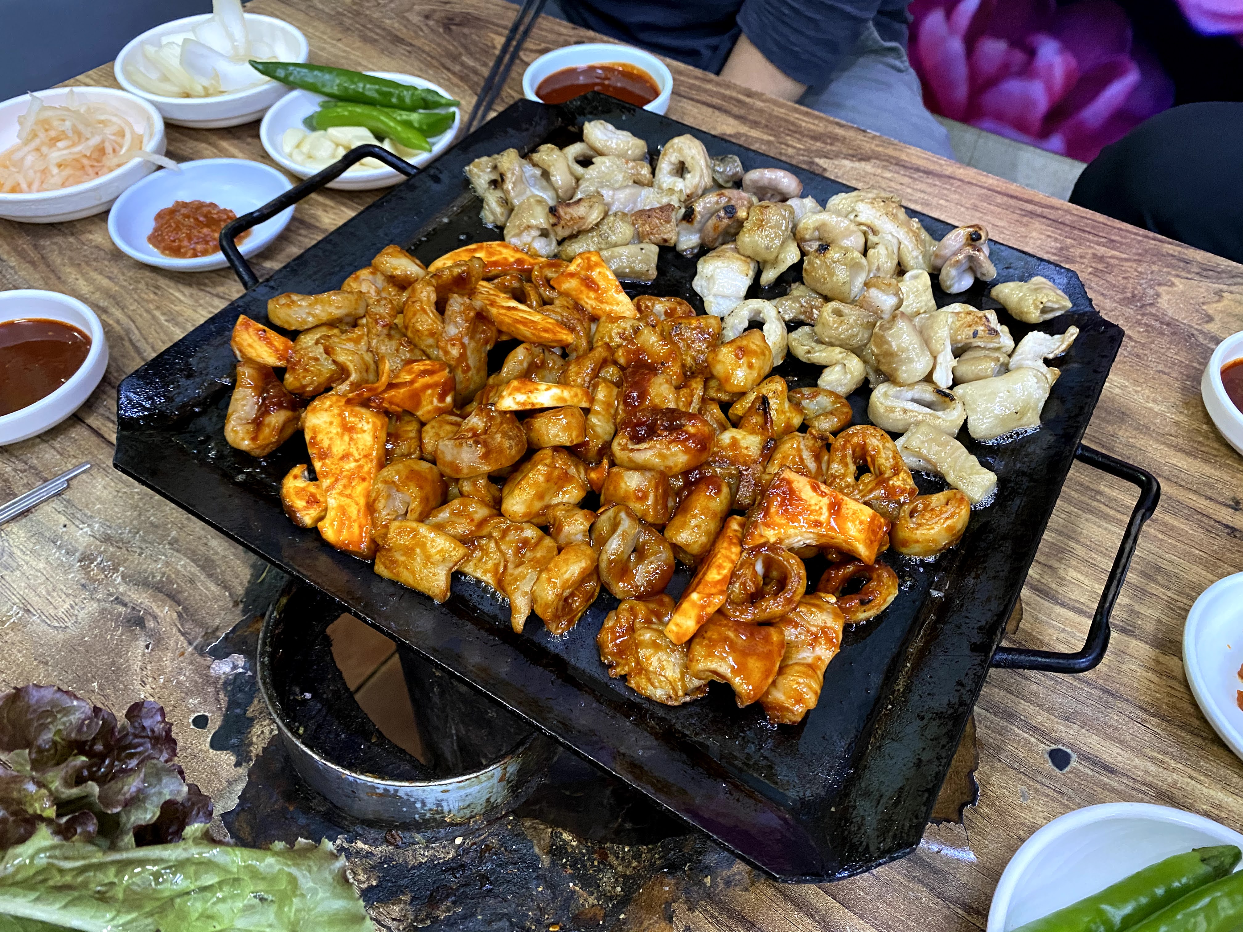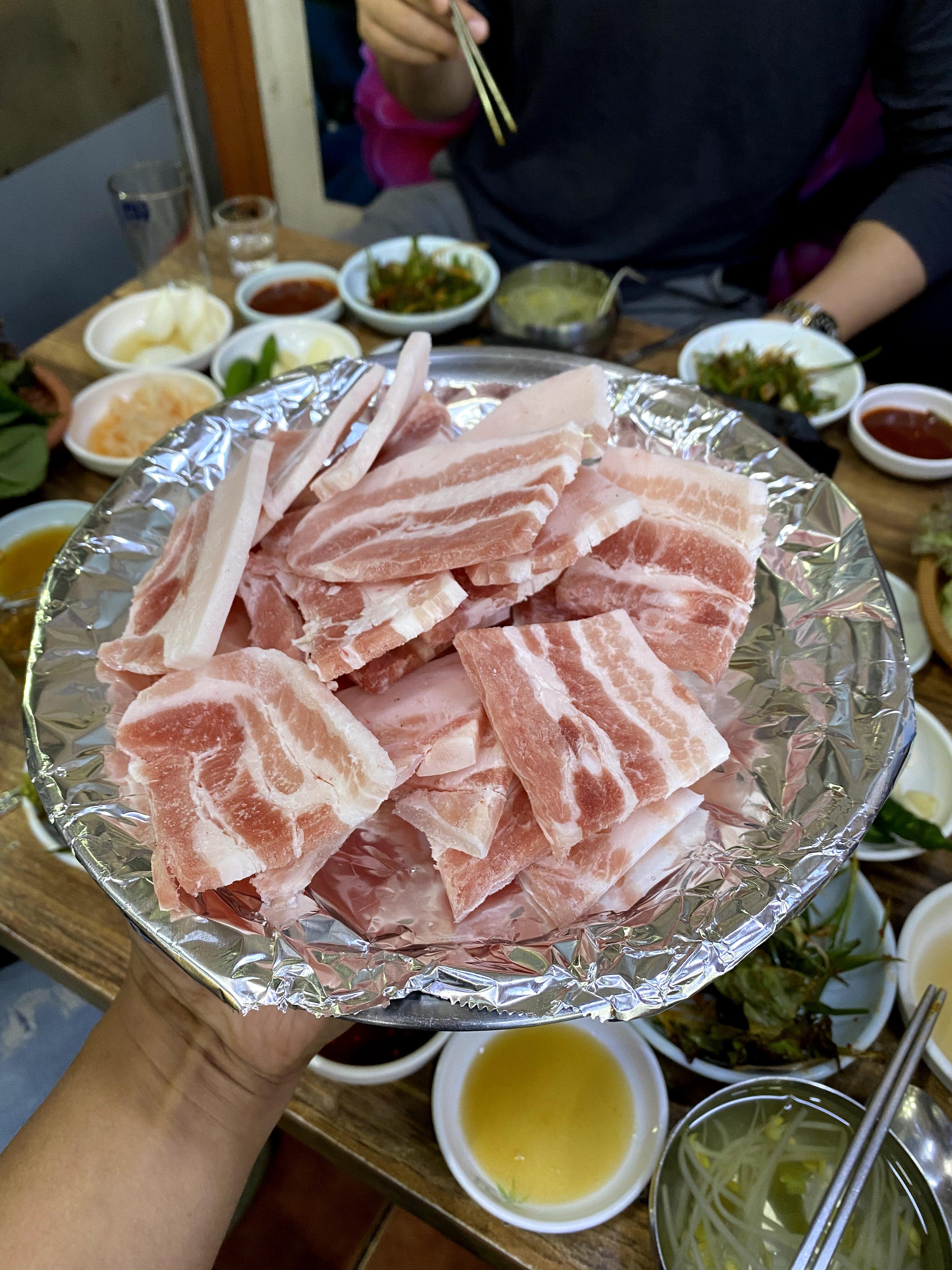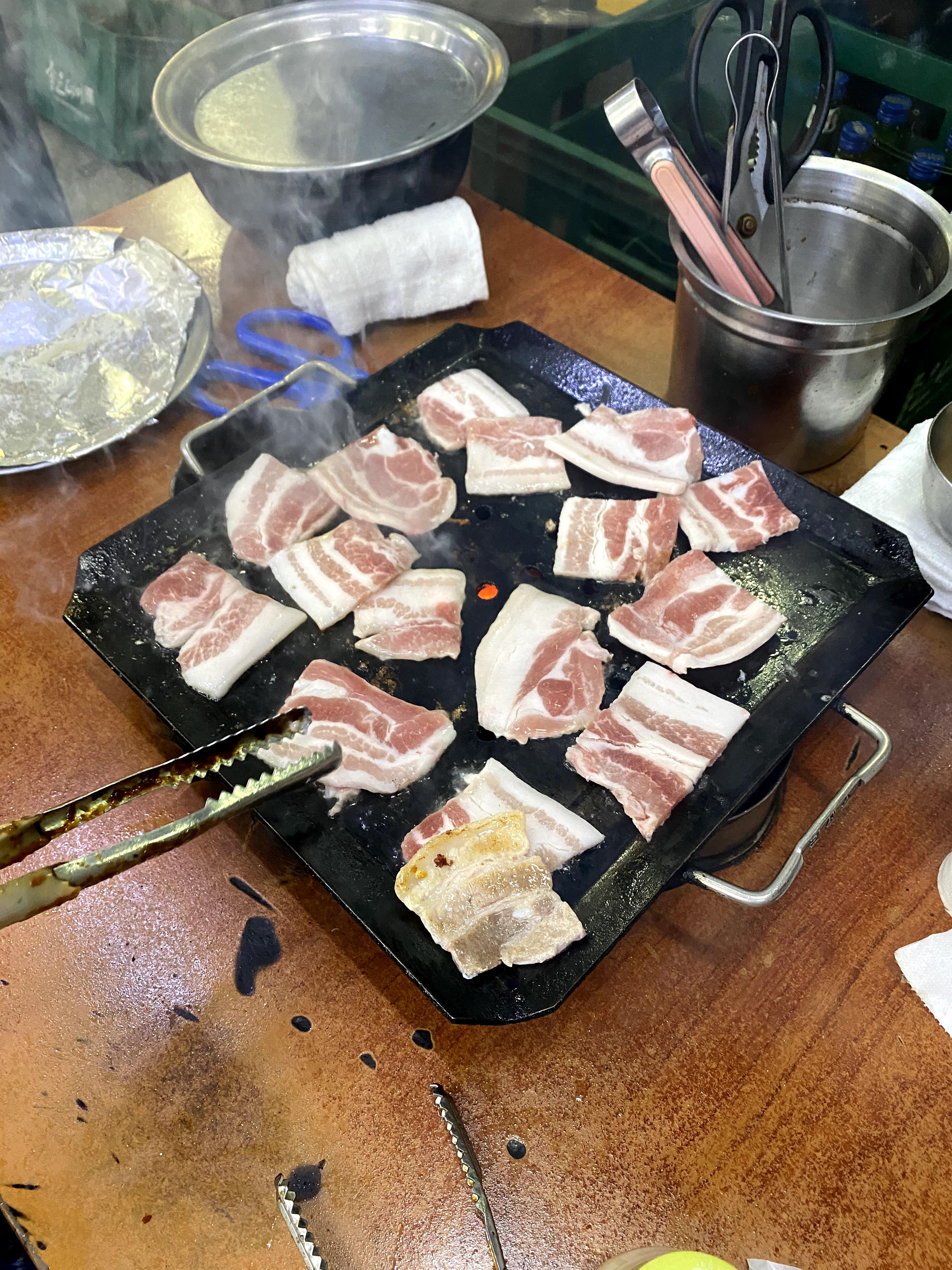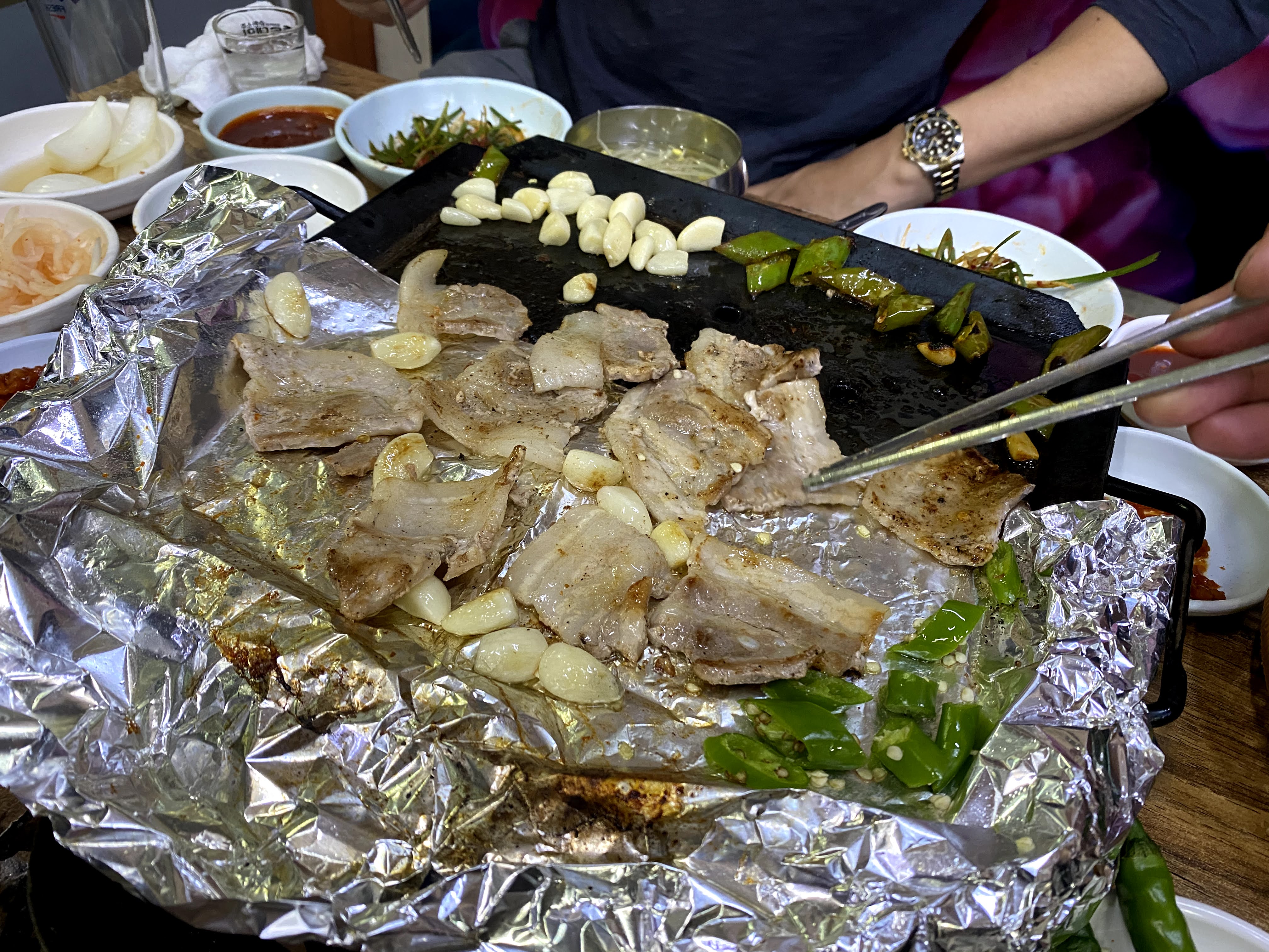 손님이 우리 테이블 밖에 없어 할머니가 한 방에 다 구워 주셨다.
