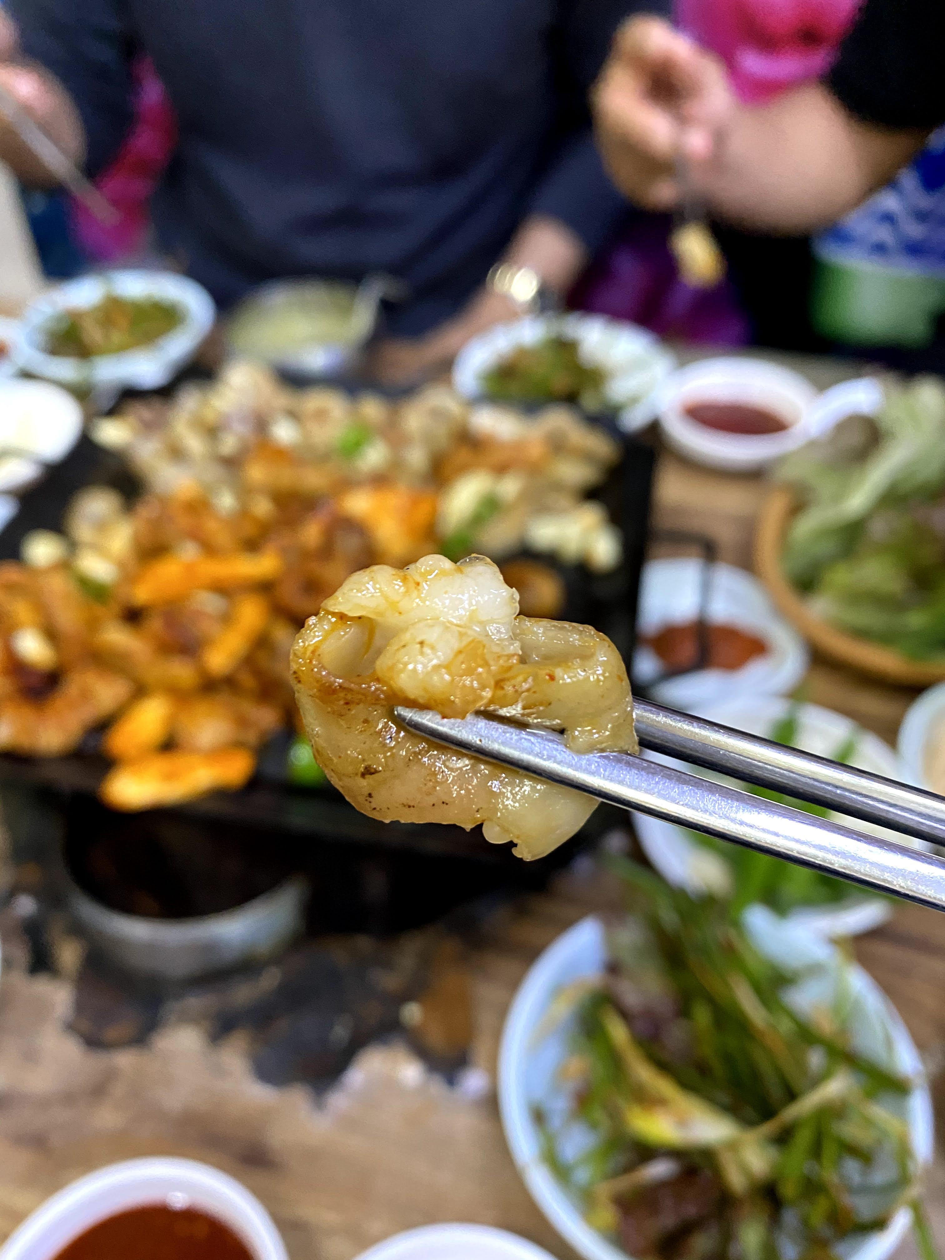 삼겹을 다 먹어가니 곱창도 잘 구워졌다.