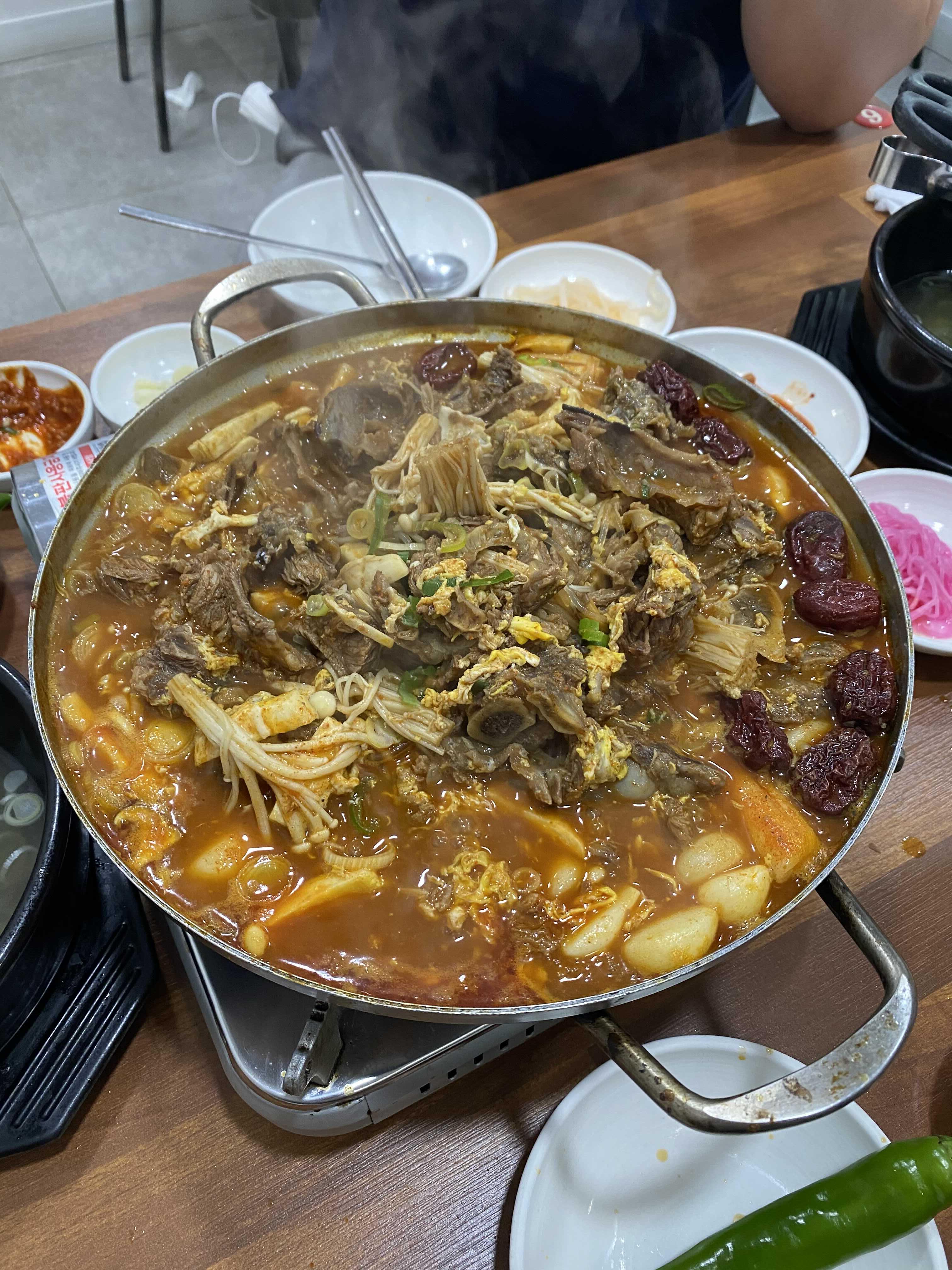 갈비뼈를 제가한 후 매운갈비찜 한 냄비.