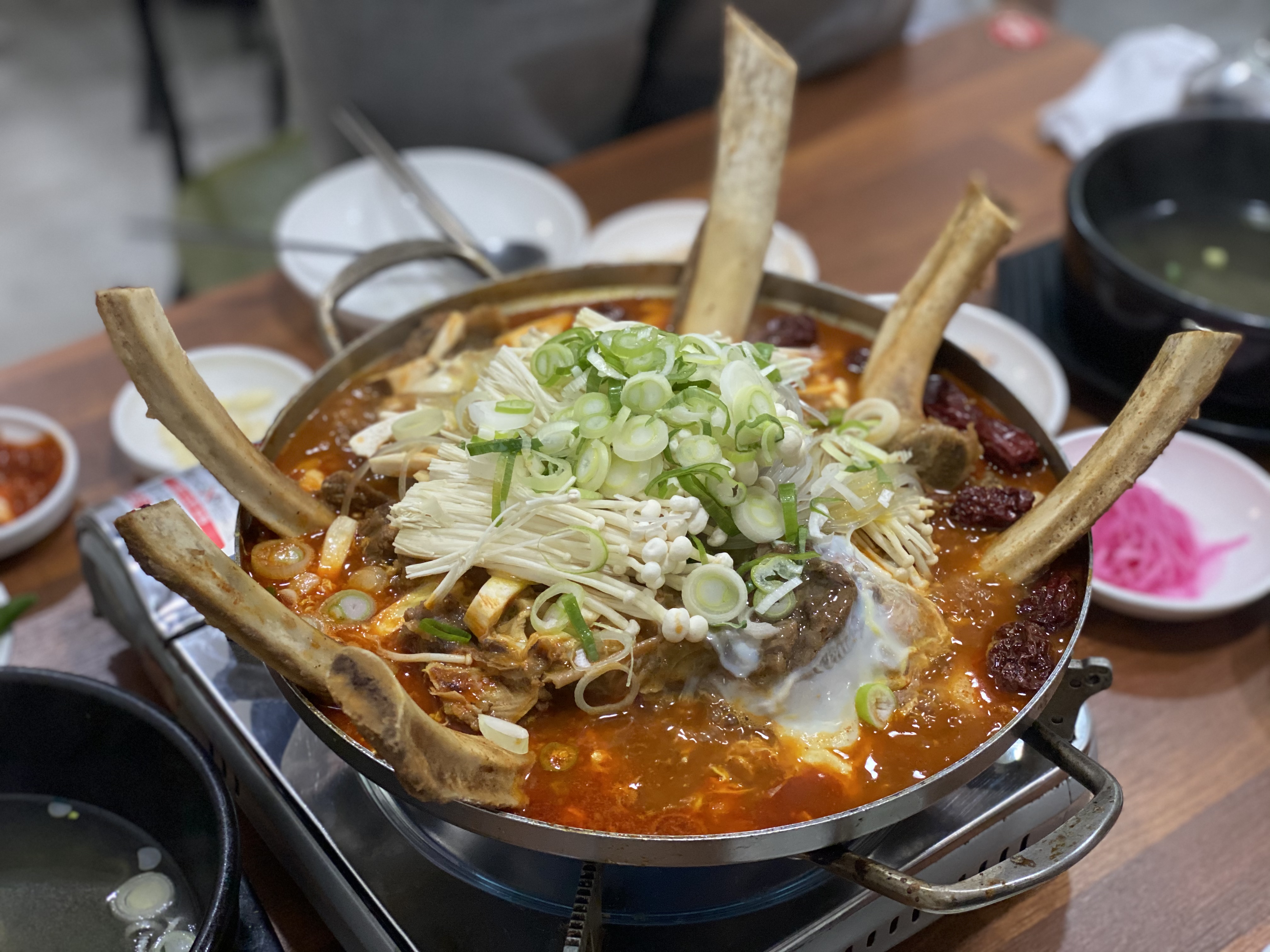 뜨끈뜨끈 구수하고 짭조름한 육수를 홀짝이고 있으니 매운갈비찜용 가스버너와 곁들임을 내어준다.
