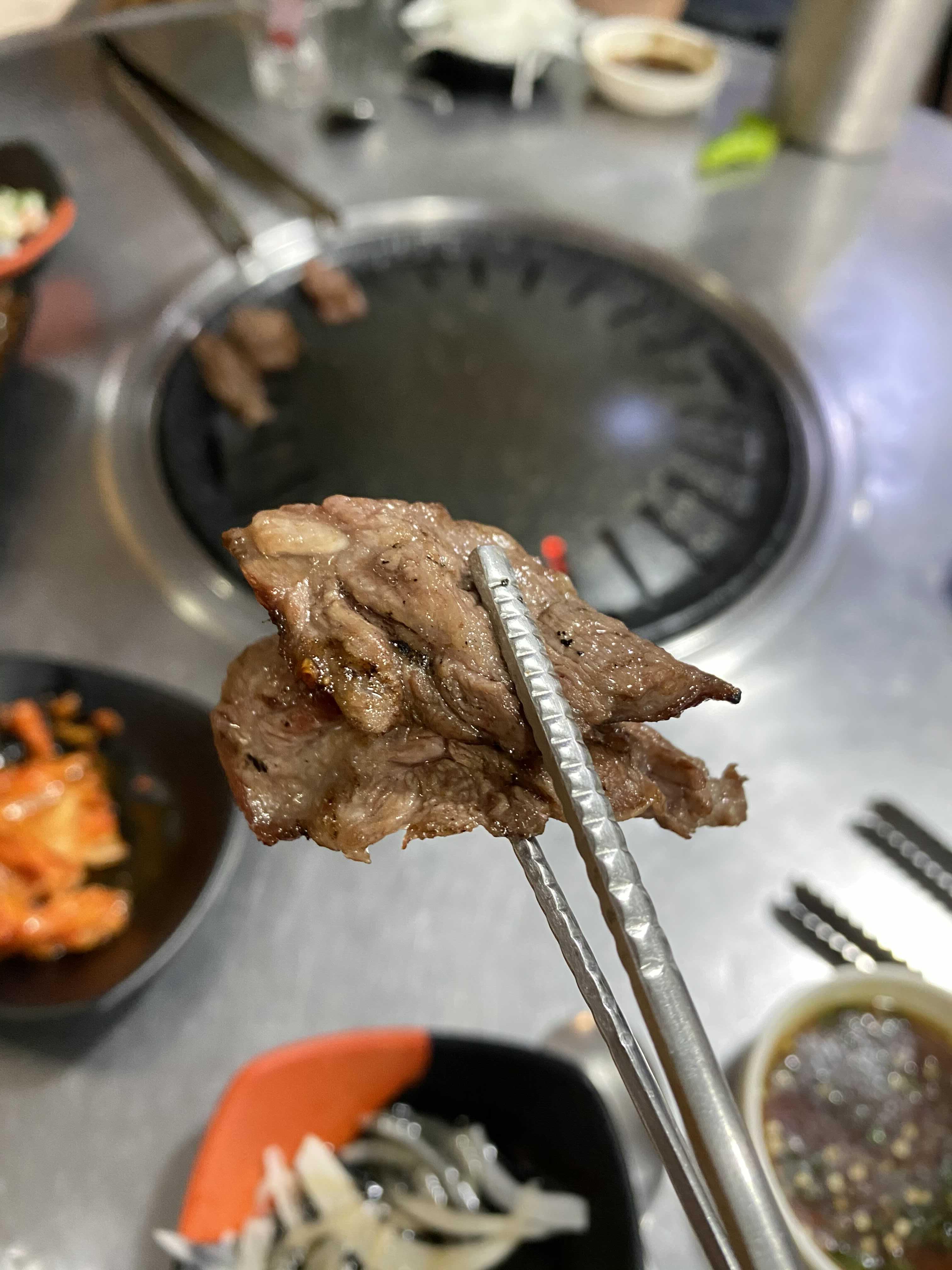 소 갈비살과 돼지 뒷고기 전문인데 가격이 참 착하다.
