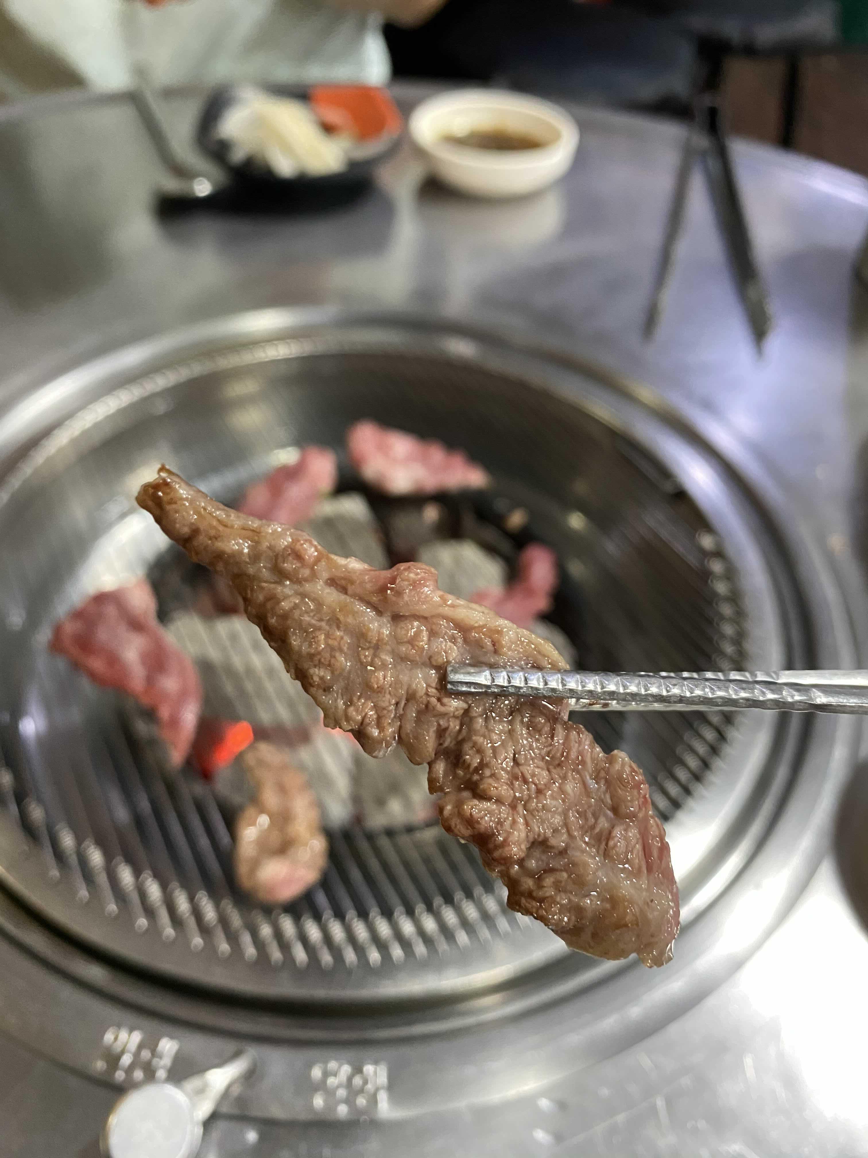 처음에는 그래도 소고기인데 일잔일점 하자며 1인당 2점씩만 불판에 올렸다.