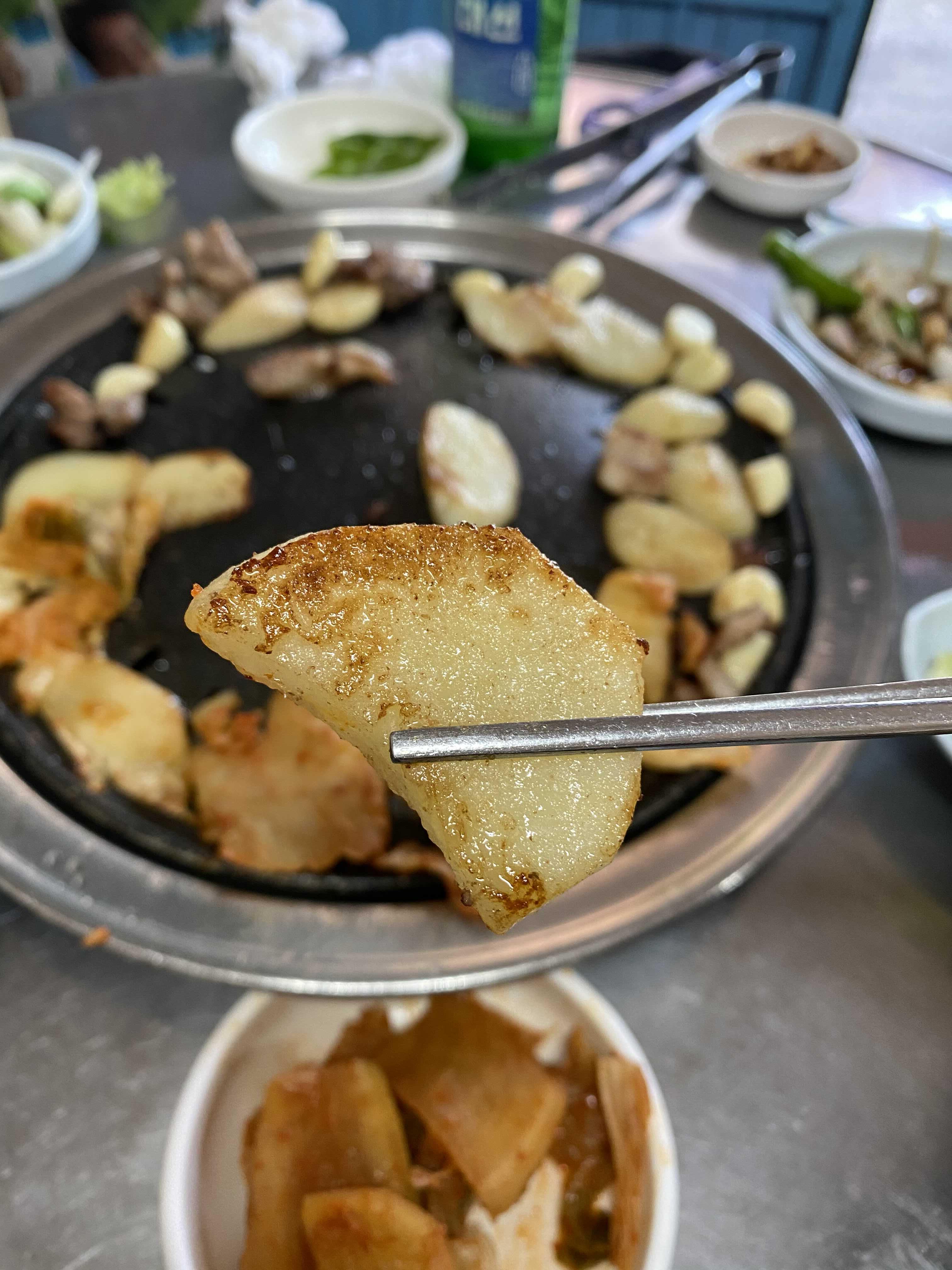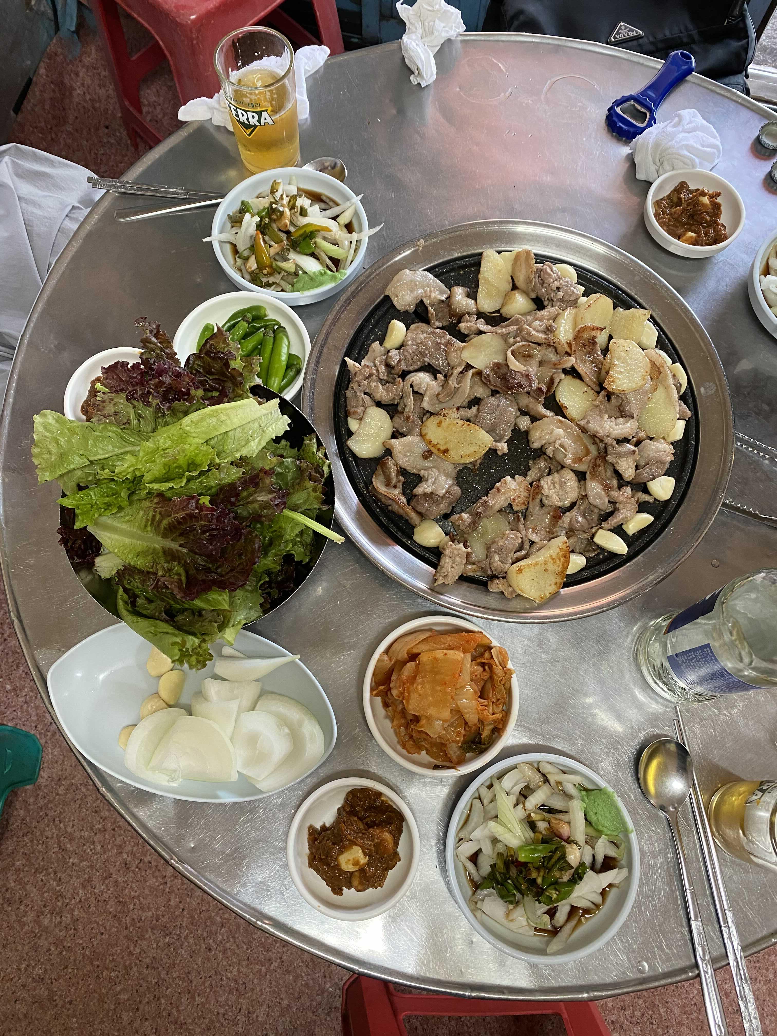 우리 뒤에 손님들이 와서 가게 테이블이 다 찼는데 음식 늦게 나온다고 뭐라하던 팀은 할머니께 한 소리 들었다. 우린 말 잘 들어서 고기 주문할 때 마다 양이 늘어나는 것 같던데...뭔가 시크하면서 츤데레 같은 느낌이랄까. 30년 넘게 이 동네에서 뒷고기집을 하셨다고 한다. 재개발이든 뭐든 지금 자리에서 나가야 한다면 옮겨서 이 일을 할 수 있을까 걱정이신가보다.
