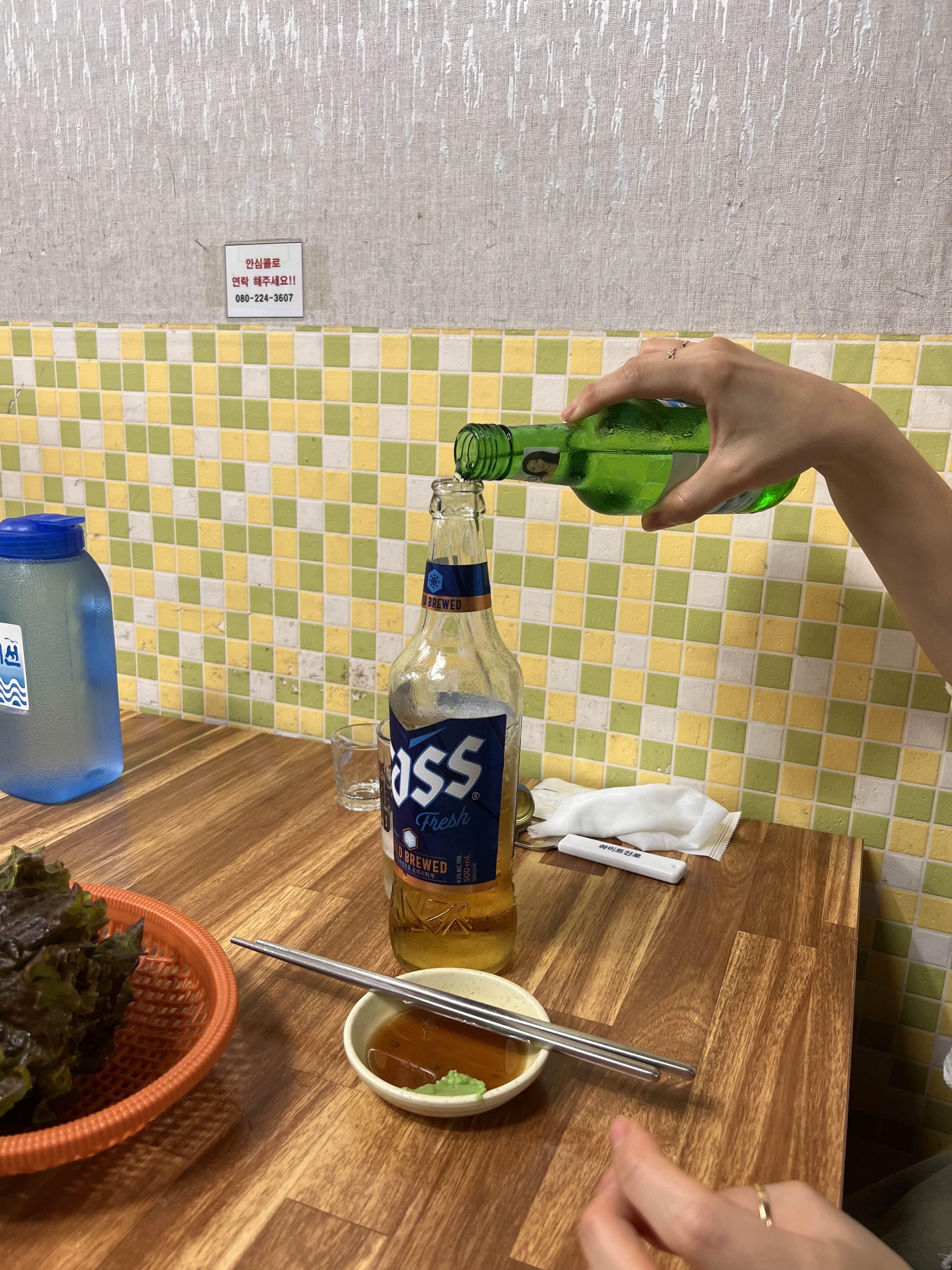 소맥 한 잔 하고 병소맥에 도전했지만, 맥주 양 조절 실패. 내리쳤는데 거품이 살짝만 올라오더라.