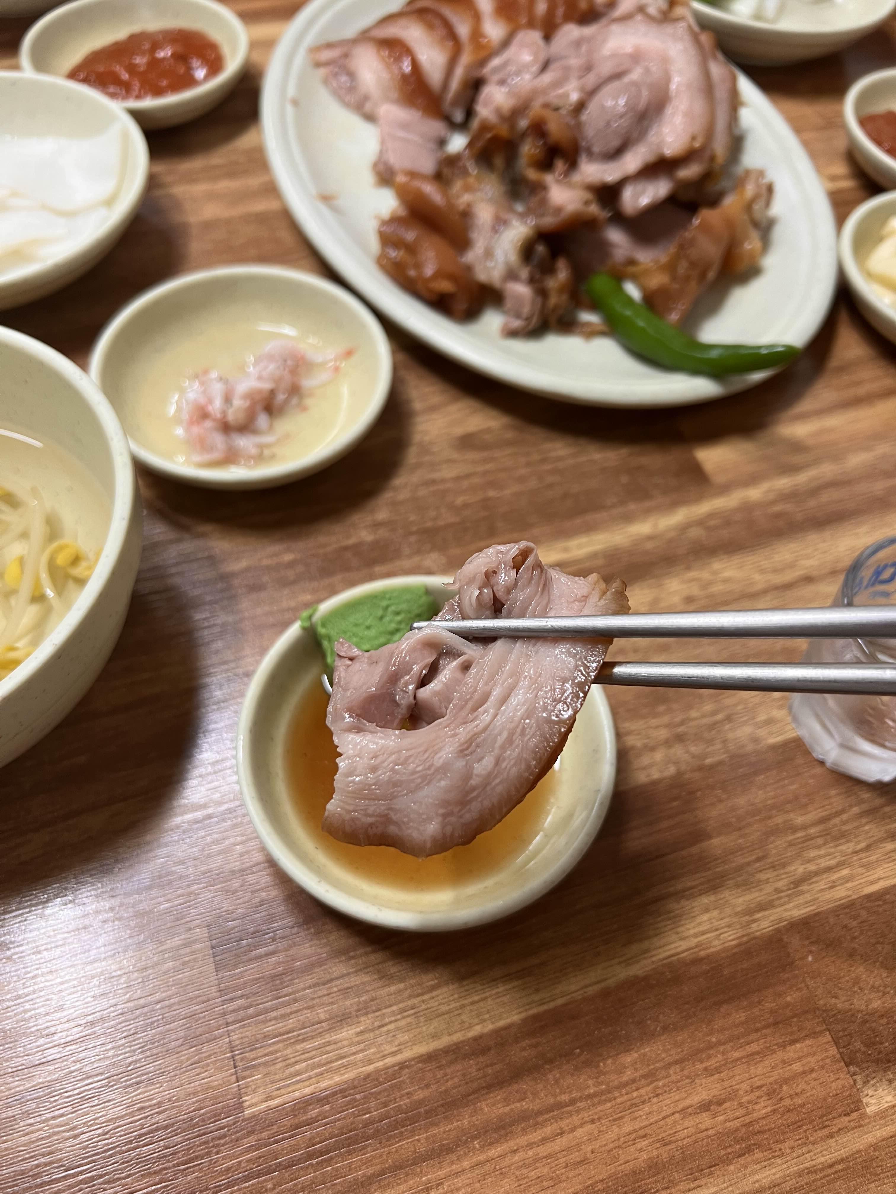 반대쪽으로 돌려서도 한 컷. 살코기 아래쪽에 뼈를 놓고 족발을 올려주는 집들도 있는데 여긴 살코기만 준다.